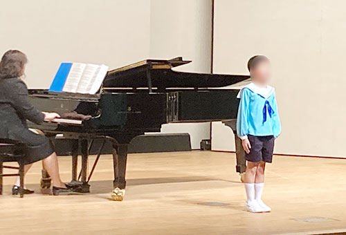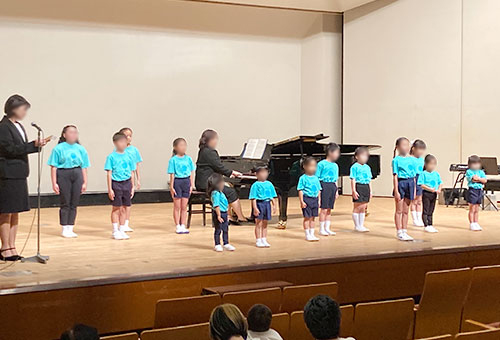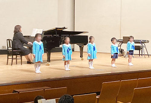 音感教育を継続して受講すると、その勉強成果を斉唱や独唱によって披露する発表会に出演できるようになります。また、音感能力、読譜力、リズム感などの能力が身についたと認められたお子さんから、ピアノの個人レッスンも開始されます。