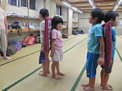 第1日目(7/27) 出発式・バスで移動・荷物整理・工作(吹き矢づくり)・ゲーム大会