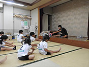 ●第3日目(7/29)室内で体操、幼児部:音感授業、児童部:リコーダー、